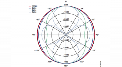 所有MEMS麦克风都具有全向拾音响应,也就是能够均等地响应来自四面八方的声音。多个麦克风可以配置成阵列,形成定向响应或波束场型。经过设计,波束成形麦克风阵列可以对来自一个或多个特定方向的声音更敏感。