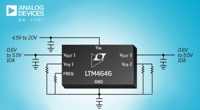 ADI 宣布推出 Power by Linear™ 的LTM4646 selina -- 周五, 02/02/2018 - 12:37 紧凑型双通道 10A 或单通道 20A µModule 稳压器为 FPGA、GPU、ASIC 和系统电源供电