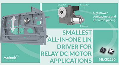 全球微电子工程公司 Melexis 宣布推出面向汽车行业机电一体化应用(包括电机控制的翼板和阀门以及小型风扇和泵)的第三代 LIN 驱动器---MLX 81330和MLX 81332,适用于功率最高为 10 W 的小型电机。