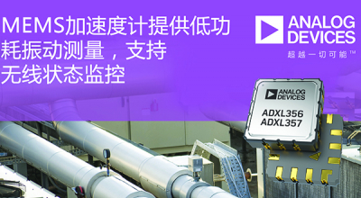 Analog Devices, Inc. (ADI)今日宣布,广受用户欢迎的低噪声、低漂移、低功耗三轴MEMS加速度计系列新增ADXL356和ADXL357两款器件。新款加速度计可实现高频低噪声性能,提供高分辨率振动测量,可在状态监控应用中尽早检测出机器故障。ADXL356和ADXL357不仅性能出色,功耗也极低,因而是无线传感器网络的理想之选。