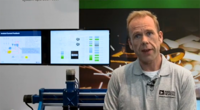 本视频介绍了PCIM的ADI展台,展台展示了CNC机两个轴的电机控制,CNC机的轴由一个微处理器ADSP-CM40X控制,该微处理器只需使用一个处理器就可以控制两个轴,详细介绍请观看视频。